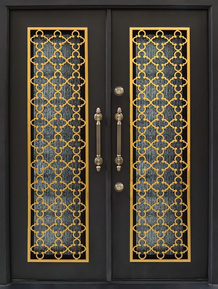 باب حديد دبل صاج مع حديد مشغول مربع 16 وخلفية زجاج