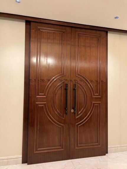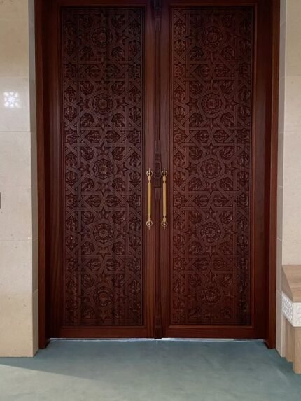 باب خشبي بتصميم كلاسيك من خشب السنديان وحفر ديكور من الخشب الطبيعي