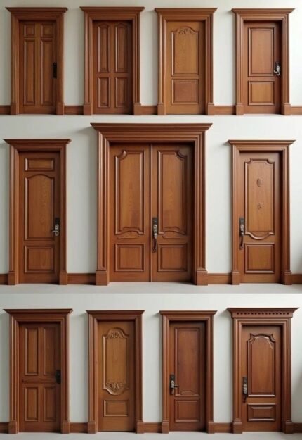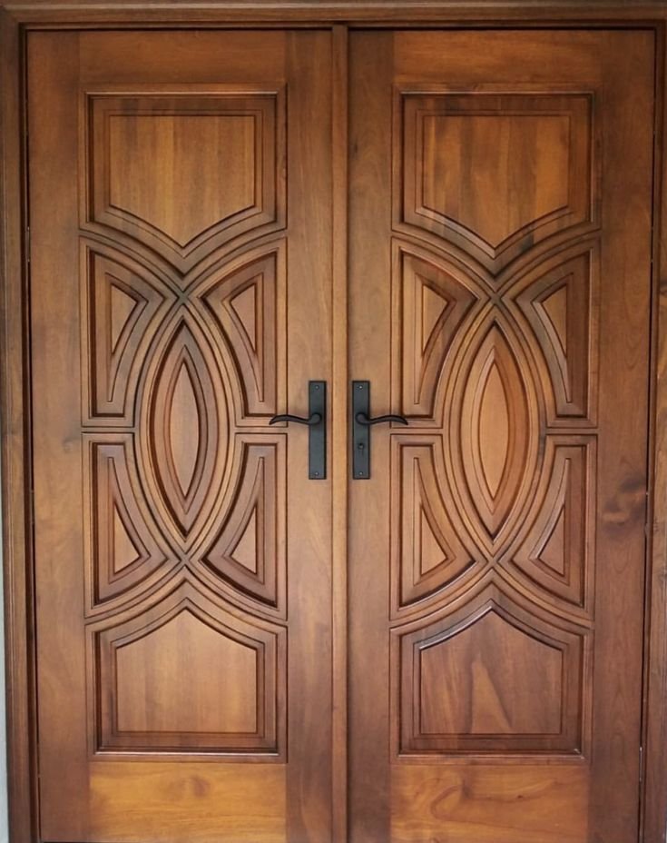 باب خشبي بتصميم كلاسيك من خشب التيك الافريقي وحفر ديكور من الخشب الطبيعي